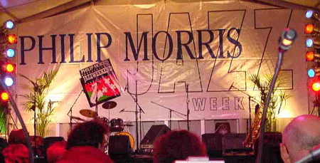 Tabaksreclame. Tabaksfabrikant sponsort jazzweekend. Associatie met tabaksmerk door gebruik naam onderneming. Heel kort: