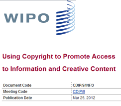 S.F. Musungu, R.A. Ghosh, C.A. Jasserand & P.B. Hugenholtz, Part I, II and III of a study commissioned by WIPO on Using Copyright to Promote Access to Information and Creative Content, WIPO.int 25 maart 2012. - in .doc-bestand.