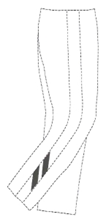 Twee strepen op mouw of onder bepaalde hoek op broekspijp niet onderscheidend